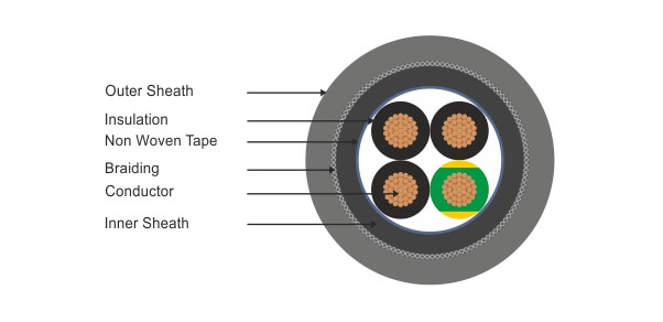 Part Number | No. of Cores & Nominal Cross Sectional Area(Sq. mm) | Approx. Cable Diameter (mm) | Approx. Copper Weight (kg/km) | Approx. Cable Weight (kg/km) |