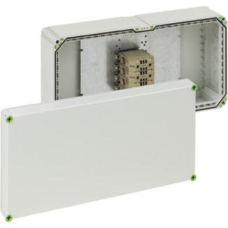 Junction box - Industrial Quality, Ui=690V, weatherproof, shock-proof, halogen-free, sealable, special screw terminal for conductor entry on top, per pole up to 2 x 150² or 4 x 70², for suitable cable in-feeds see accessories
